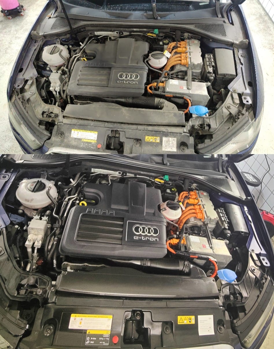 Eventuele olie- en vetresten worden verwijderd, kabels en kunststofdelen worden netjes behandeld en alles krijgt weer een frisse, verzorgde uitstraling.